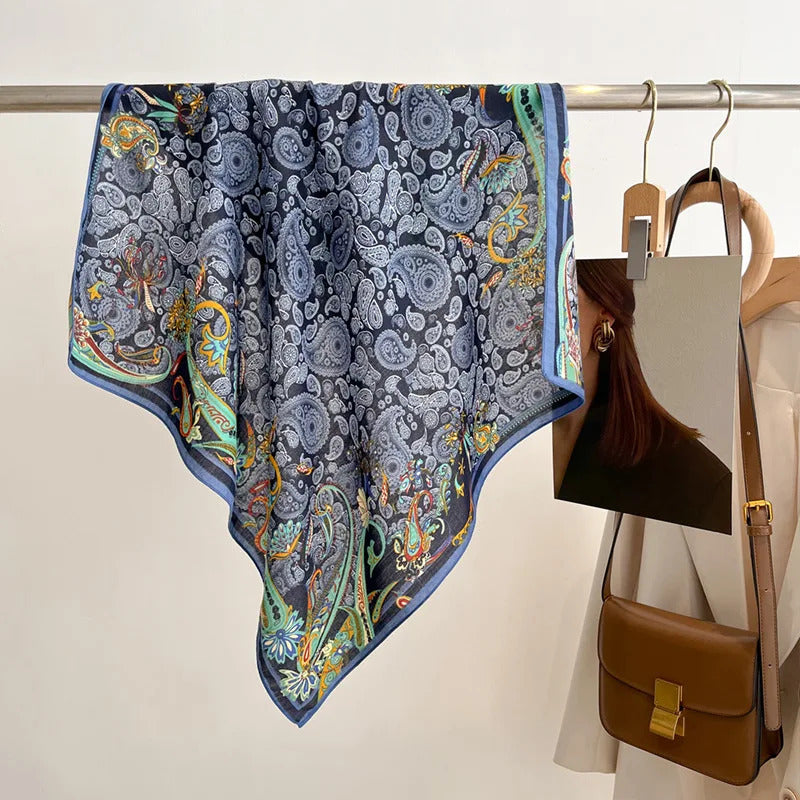 Spring/Summer 70cm Cashew Print Square Scarf Women’s Breathable Imitation Silk Bandanna Luxury Female Neckerchief Fashion Hijab