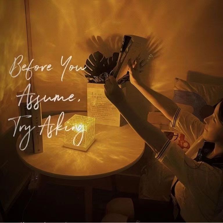 Square Water Ripple Atmosphere Lamp Night Light Creative Gift for Girls Bedside Bedroom Flame Aurora Dynamic Table Lamp