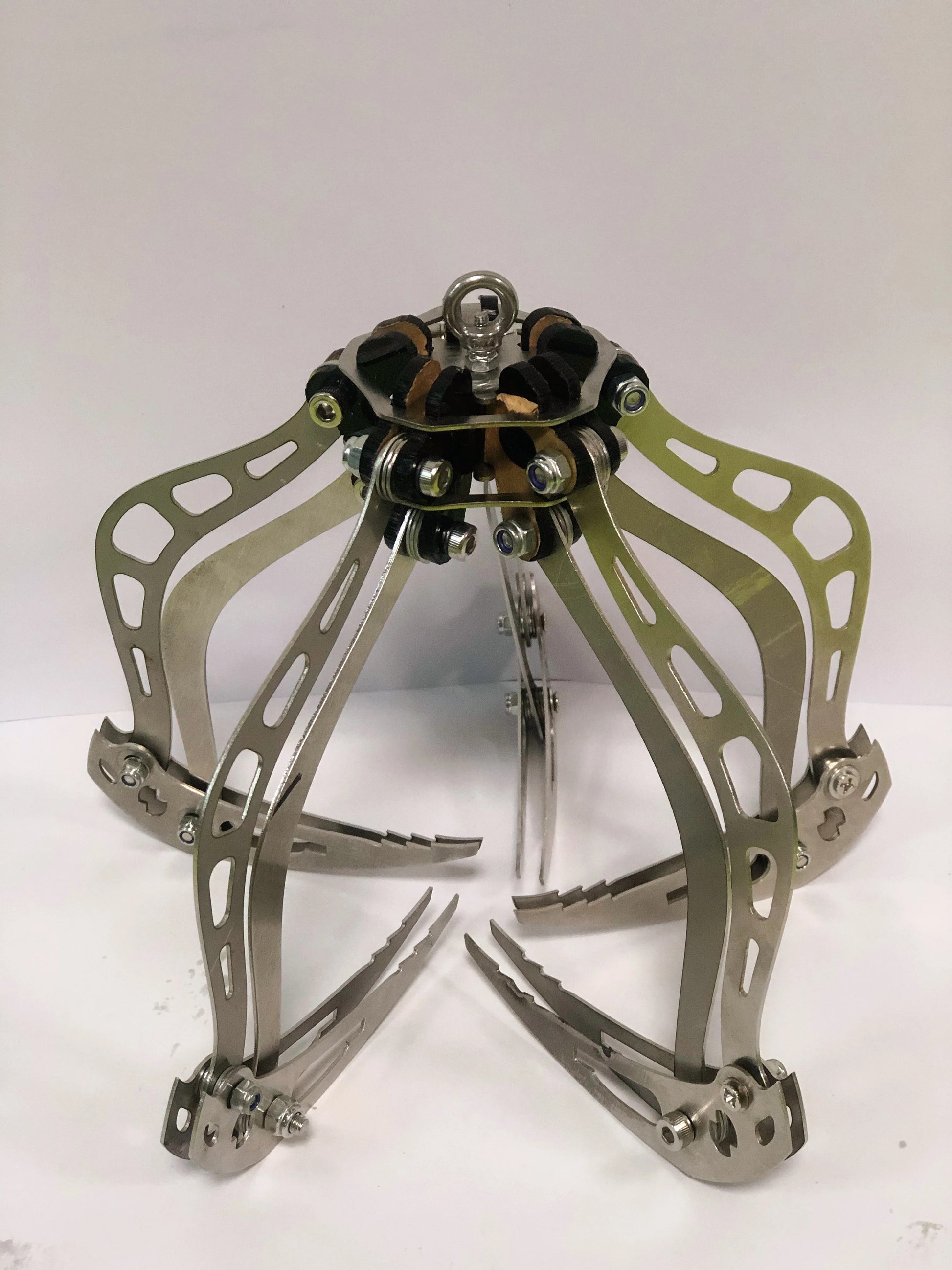 Gravity spreads the legs out upon contact, which close when ascending away with your recovered objects!