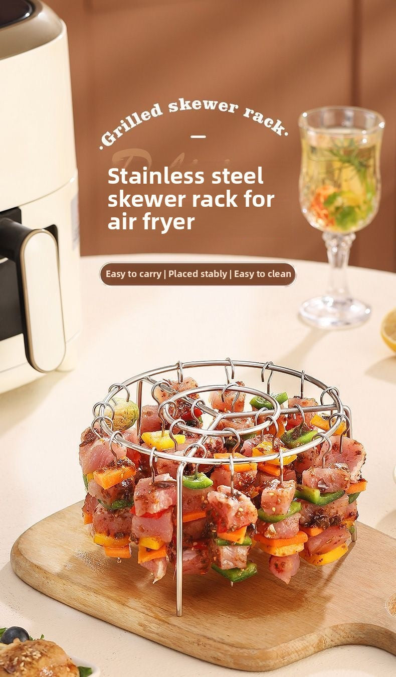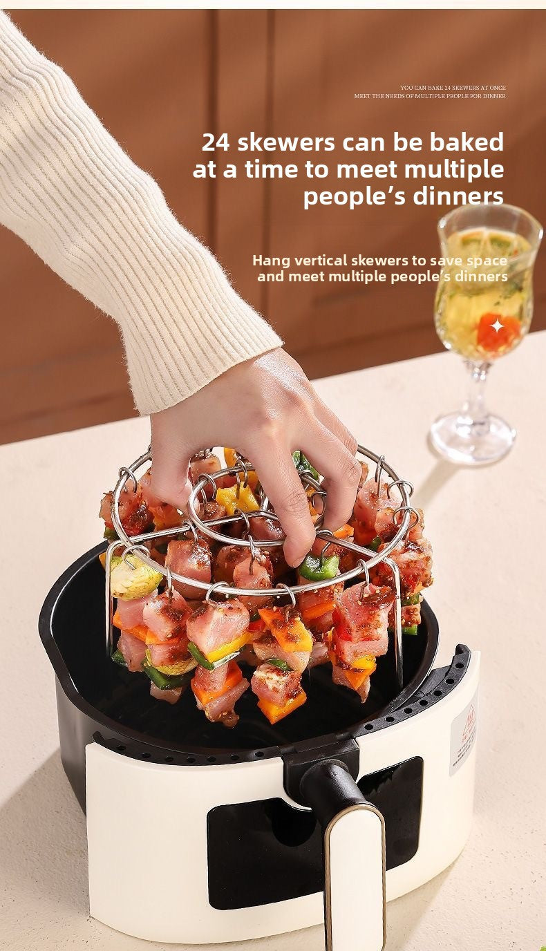 Stainless Steel Skewer Rack Grill Air Fryer Oven New Model Round Vertical 24-Skewer Hanging Grill Oven
