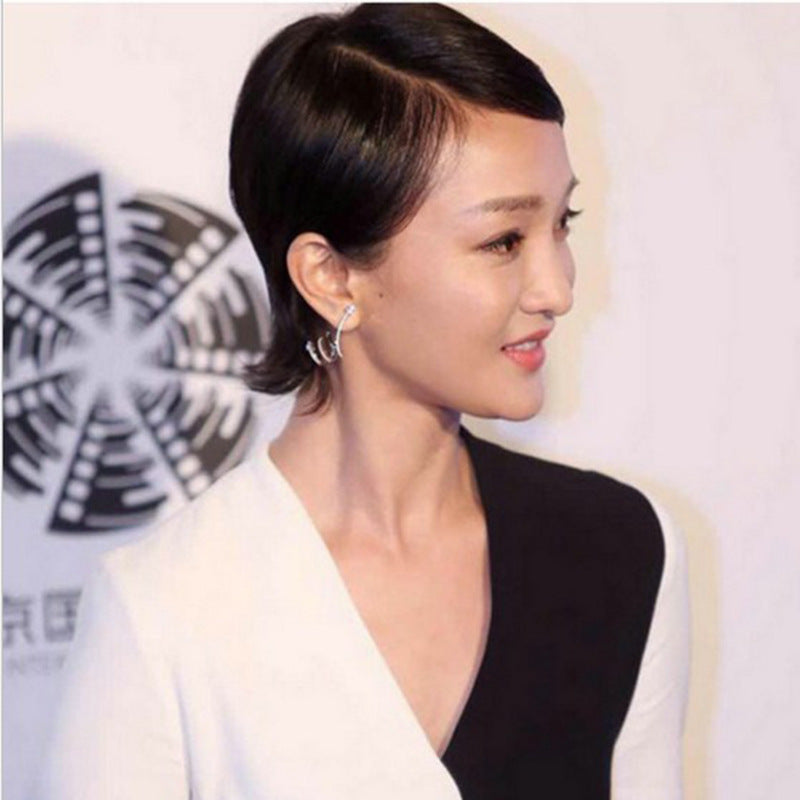 Star Earrings Sterling Silver Needle Personality Temperament Micro-inlaid Zircon Line Snake Earrings Earrings Single