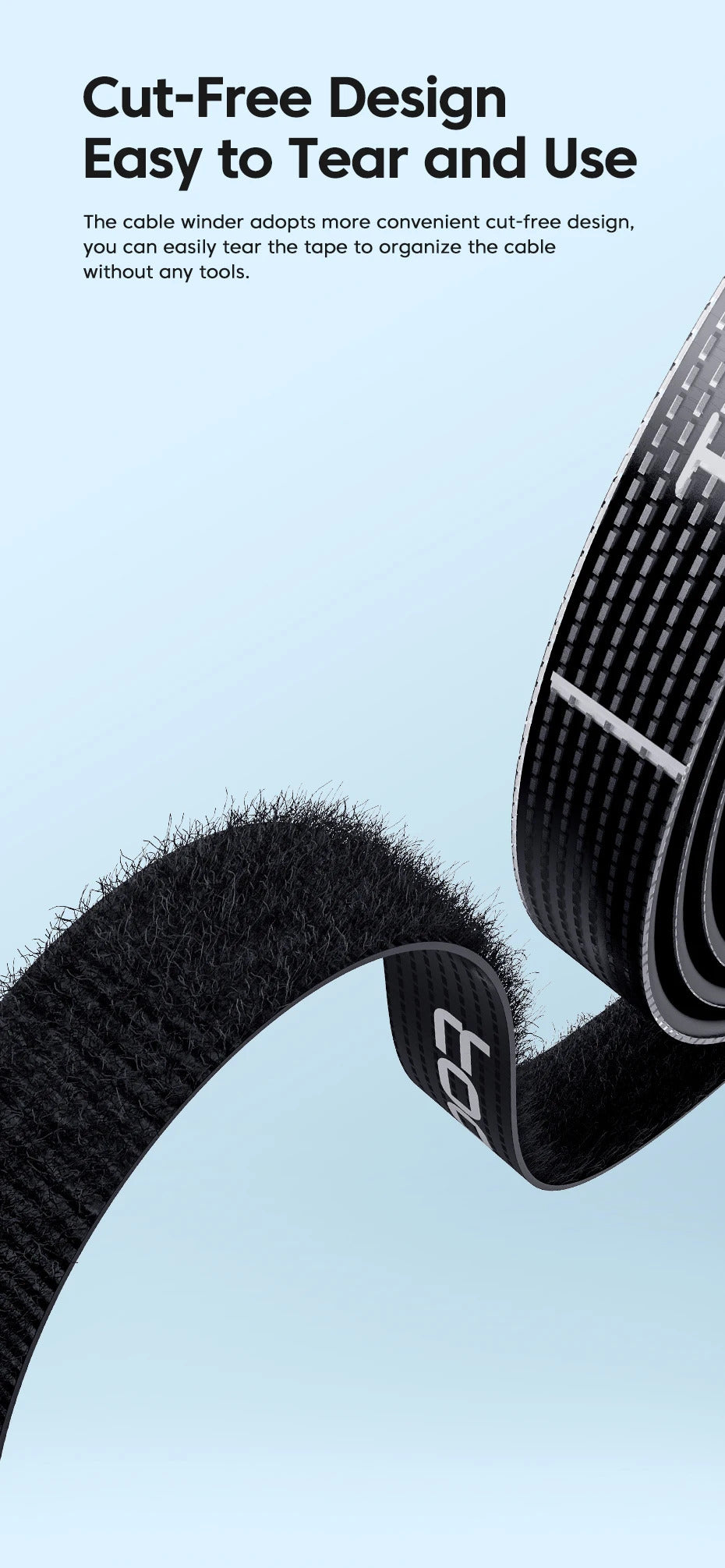 Cut-Free Design Easy to Tear and Use The cable winder adopts more convenient cut-free design,you can easily tear the tape to organize the cable without any tools.