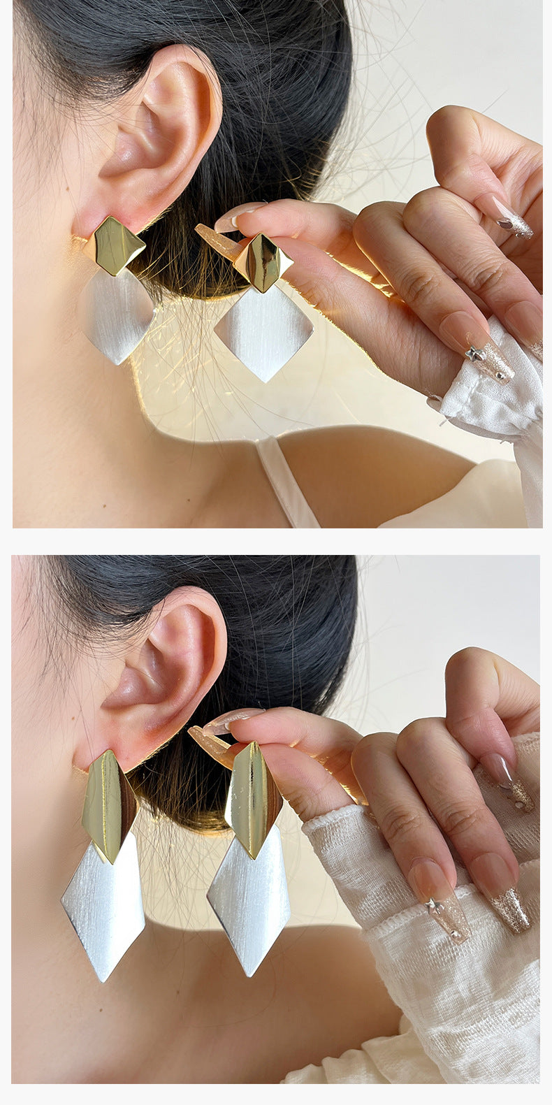 Trendy Color-Block Brushed Silver Rhombus Earrings Personality 925 Silver Needle Women's Stud Earrings 2025 New High-End Fashion