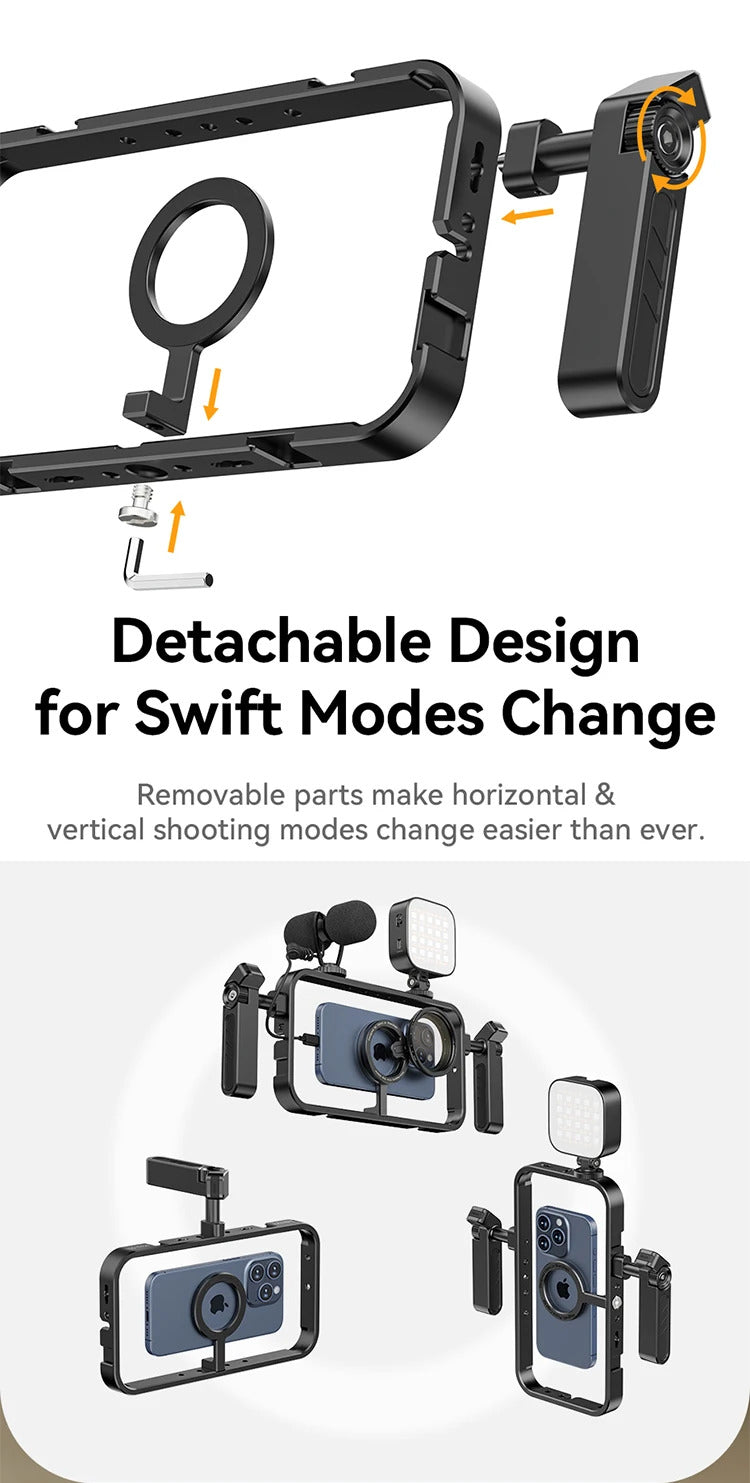 Removable parts make horizontal &vertical shooting modes change easier than ever