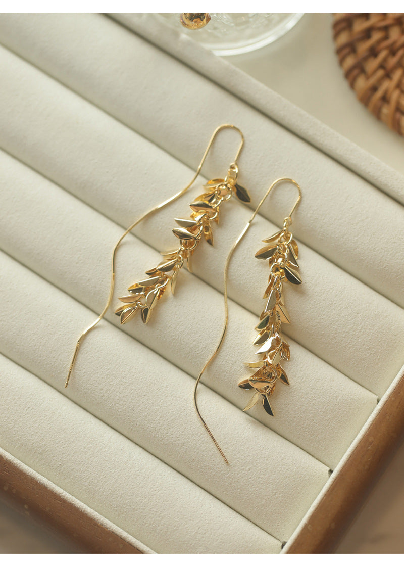 Unique Design Gold Wheat Ear Long Tassel Earrings Ear Thread Light Luxury Elegant Fashion Minimalist Style Earrings