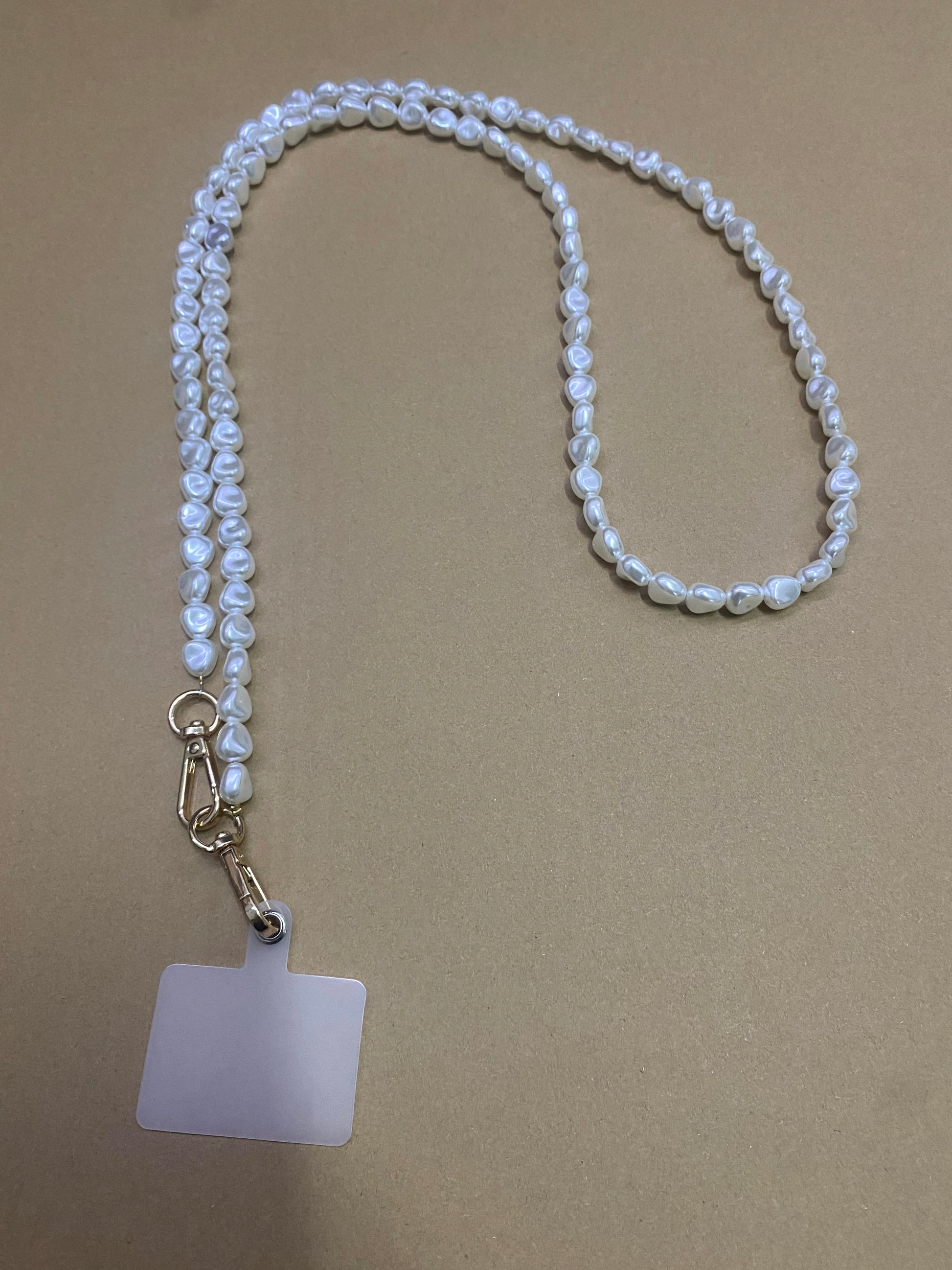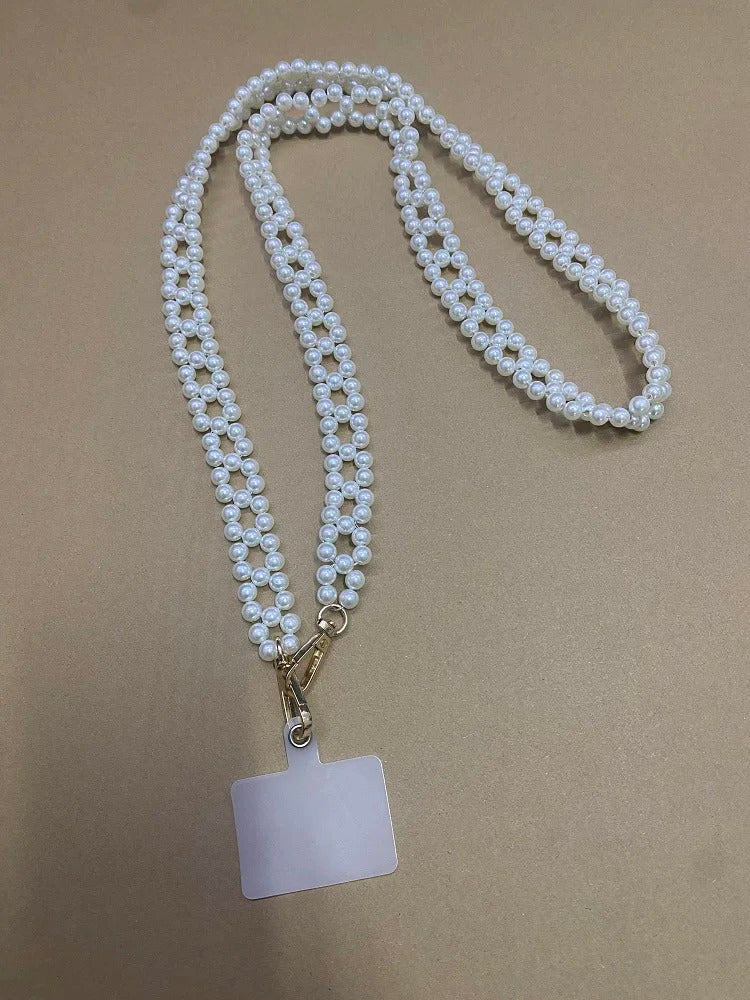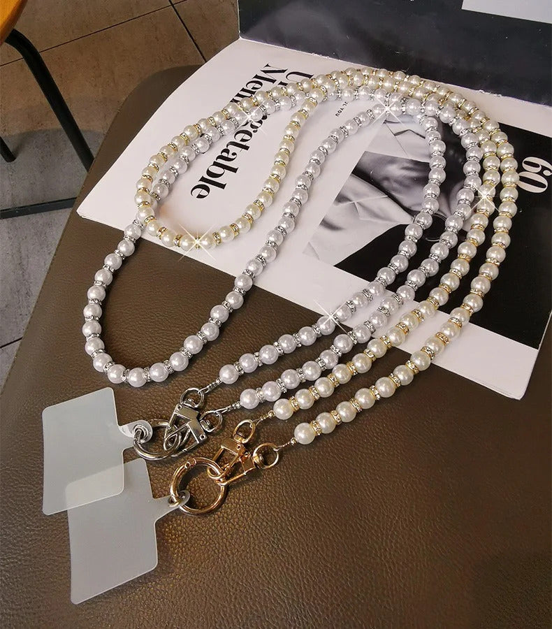 Universal Glitter Phone Lanyard Long Crossbody Necklace Chain Pearl Straps Keychain Anti-lost Sling with Patch for Phone Case