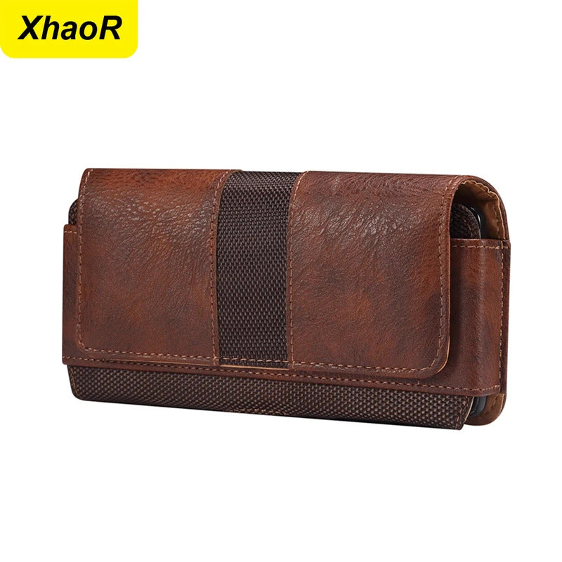 Universal Leather Mobile Phone Waist Bag For iPhone 15 14 13 12 Pro Max Samsung Huawei Xiaomi Men Belt Clip Cover With Card Slot