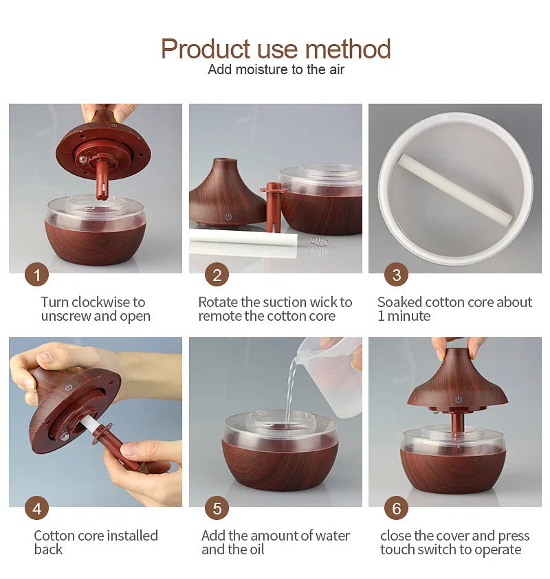 USB Cool Mist Sprayer Portable 300ml Electric Air Humidifier Aroma Oil Diffuser with Colorful Night Light for Home Car