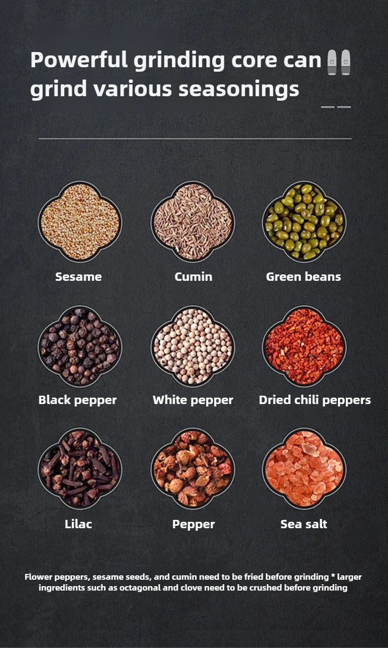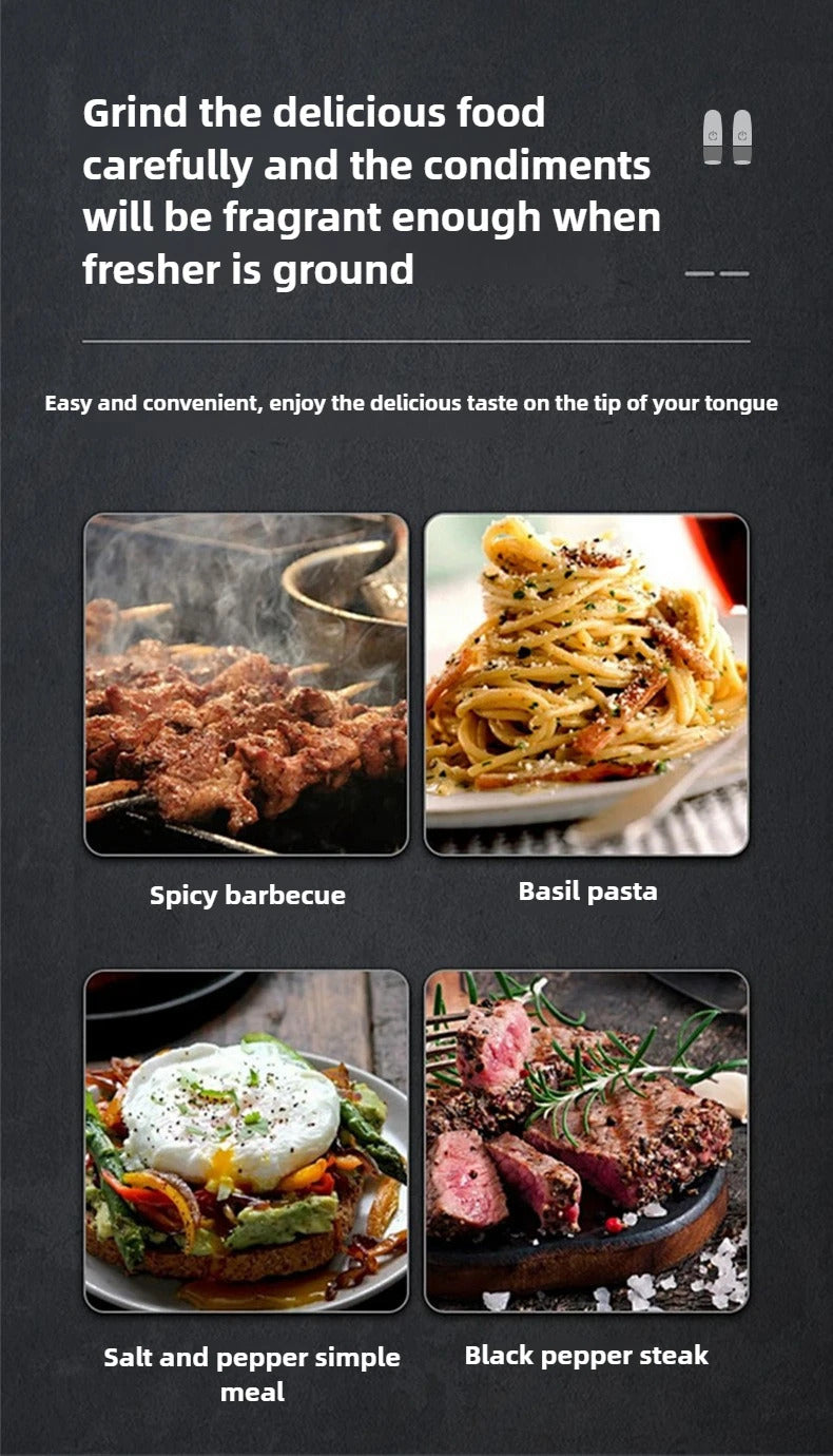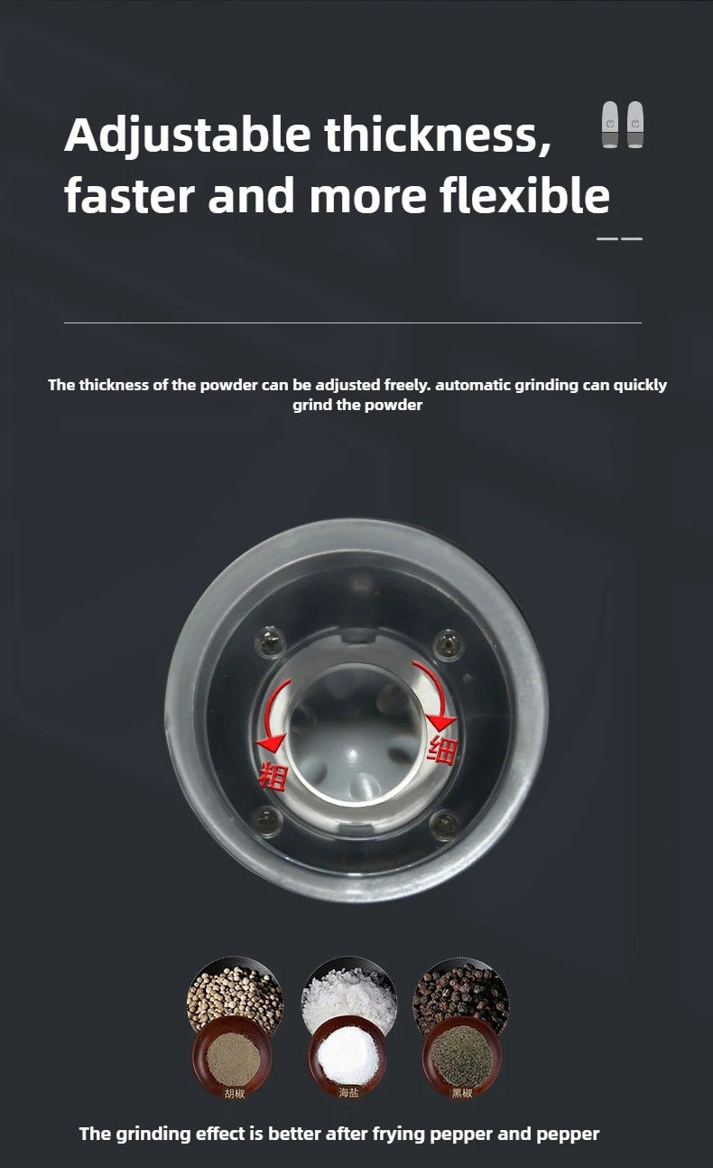 USB Rechargeable Electric Salt and Pepper Grinder Adjustable Coarseness Large Capacity Auto Spices Grinders Kitchen Cooking Tool