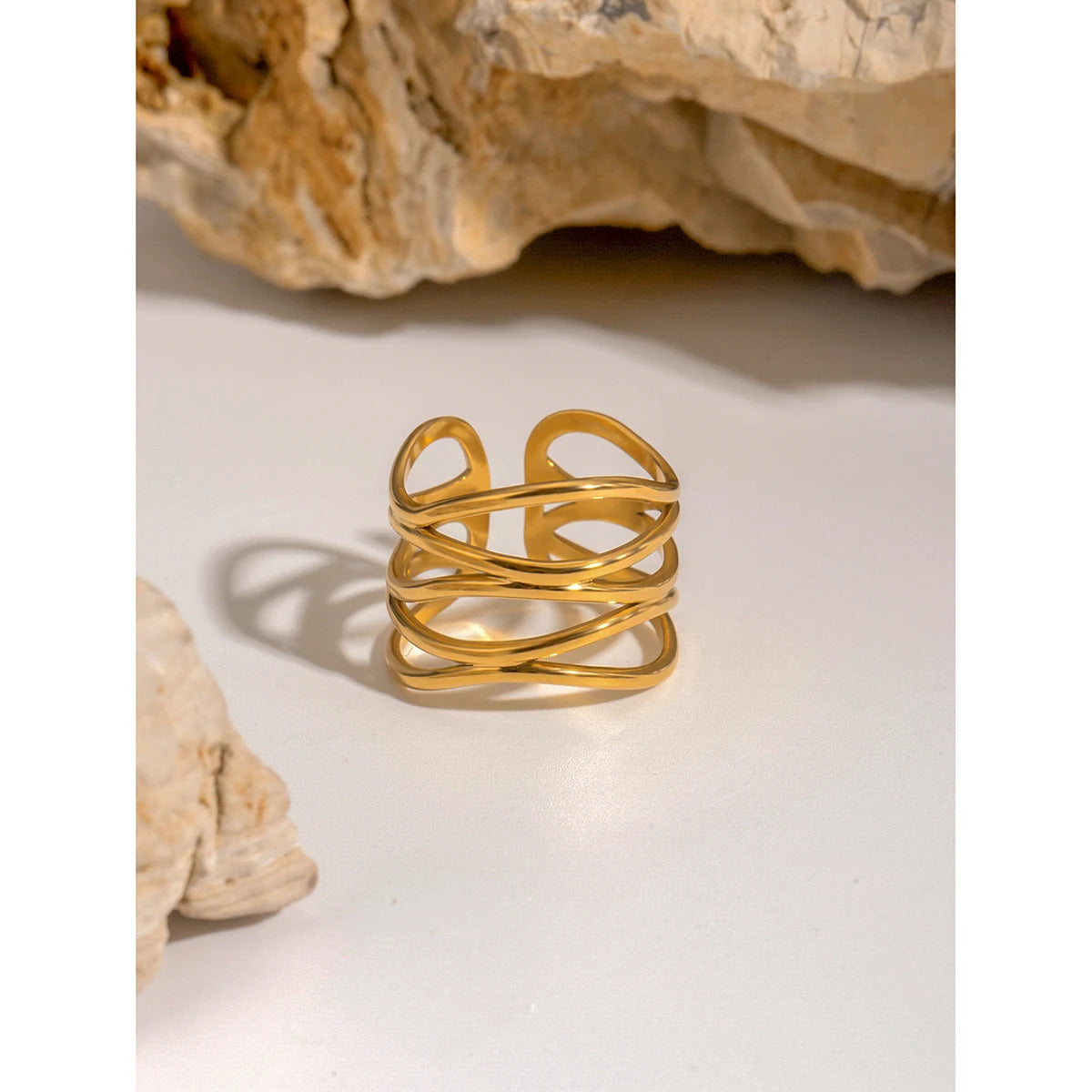 Uworld New Stainless Steel Jewelry Minimalist Metal Golden 18 K PVD Plated Opening Ring for Women Bagues Pour Femme Party Gift