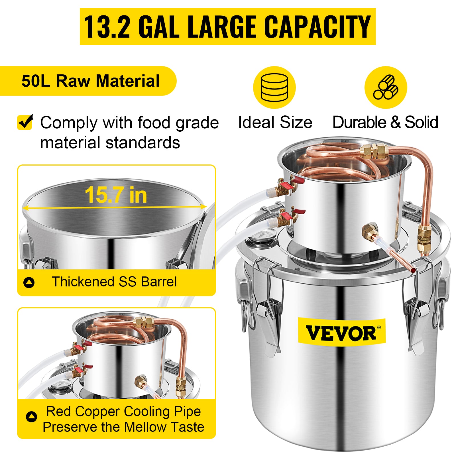 VEVOR 50L Moonshine Still Alcohol Distiller w/ Water Pump Stainless Copper DIY Home Brew Ethanol Wine Essential Oil Brewing Kit