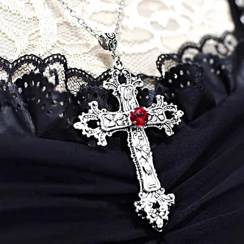 Y2K Punk Cross Pendant Necklace for Women Gothic Clavicle Vintage Chain Choker Necklace Aesthetic Party Gifts Fashion Jewelry