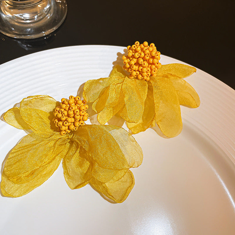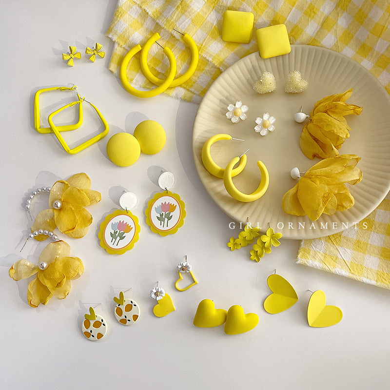 Yellow Series Fresh Fashion Versatile Flower Butterfly Earrings Simple Geometric Hoop Student Temperament Earrings for Women