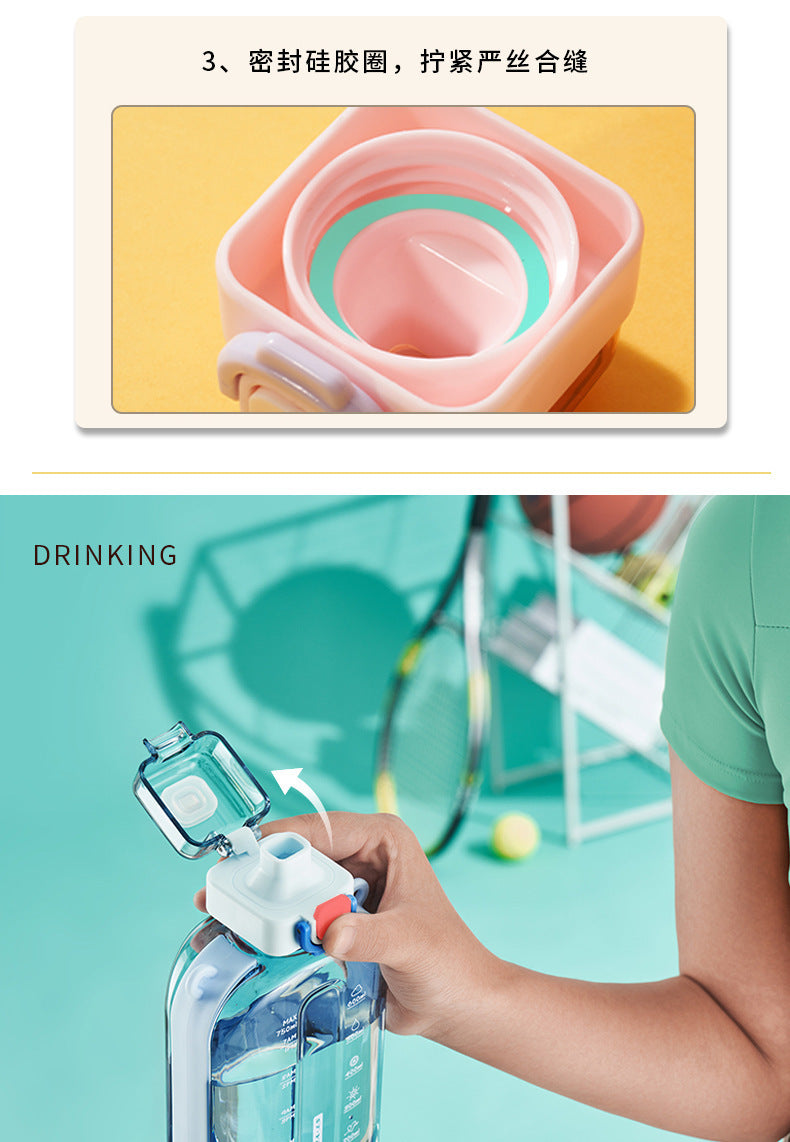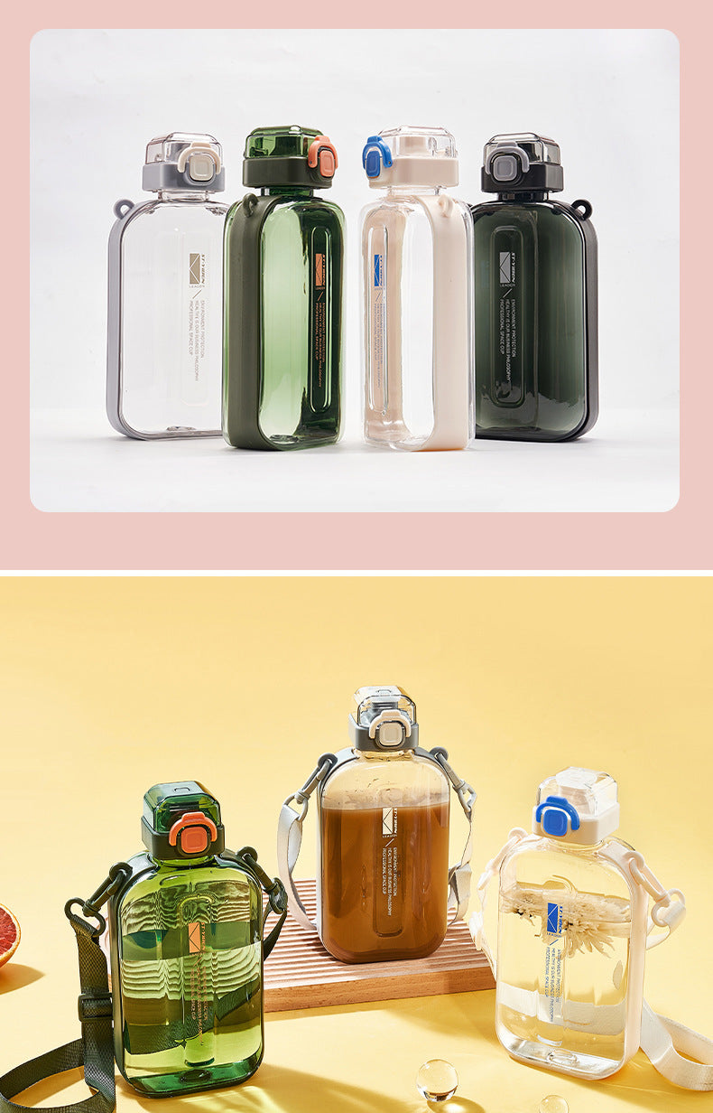 Yiben Muxin Space Cup Simple Flat Plastic Cup Unisex Portable Handheld Cup Square Crossbody Sports Water Bottle