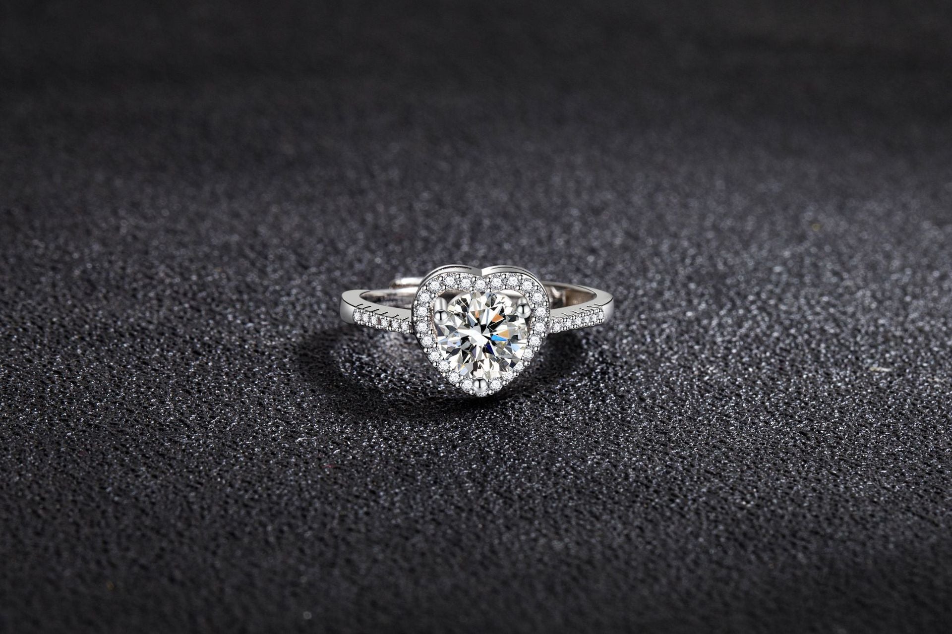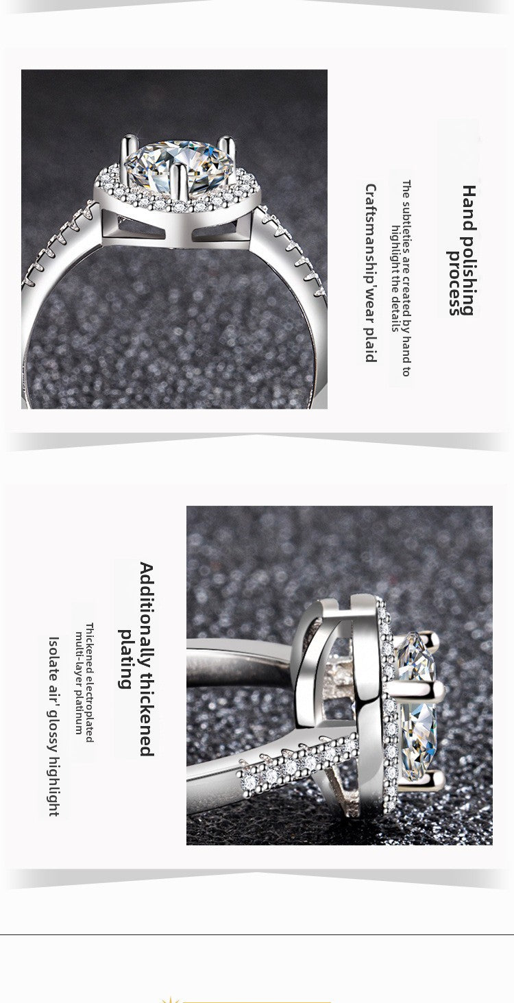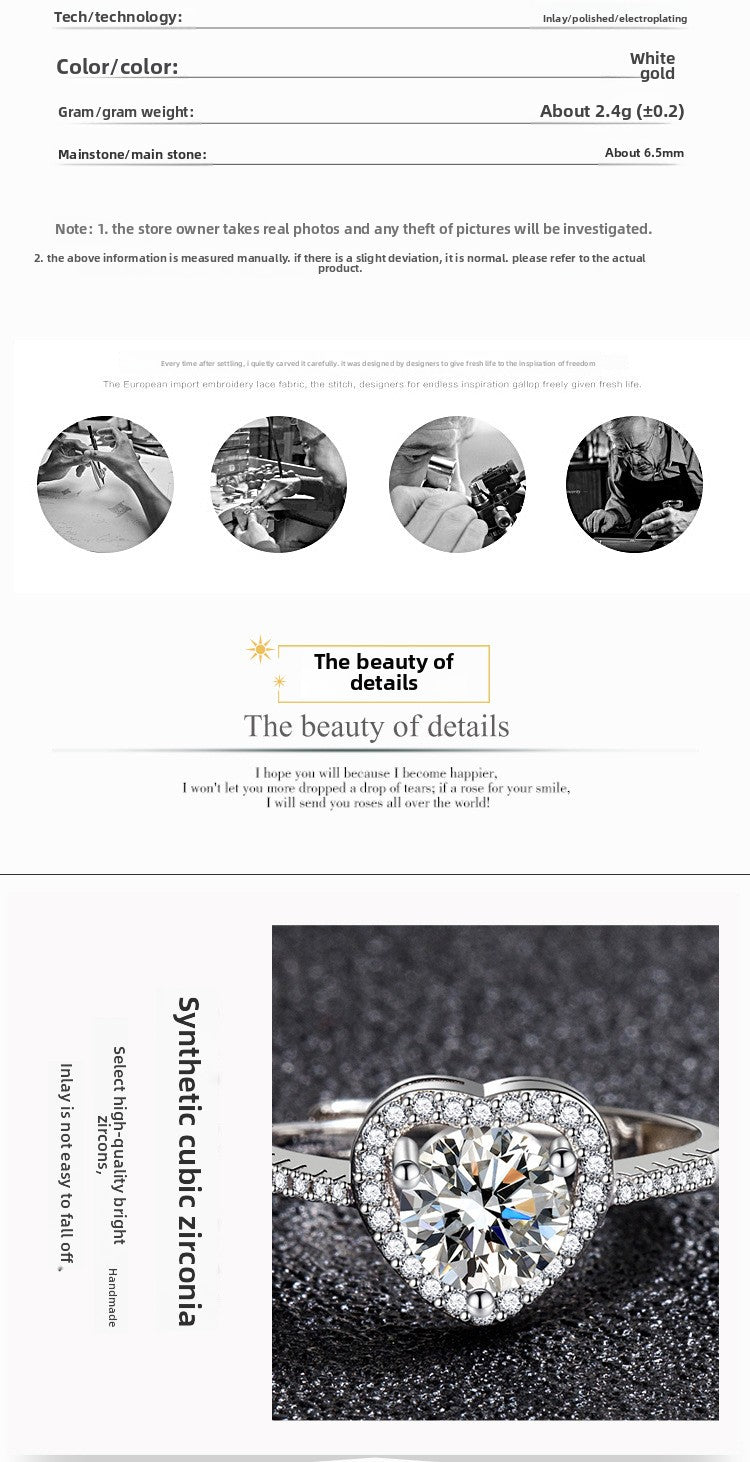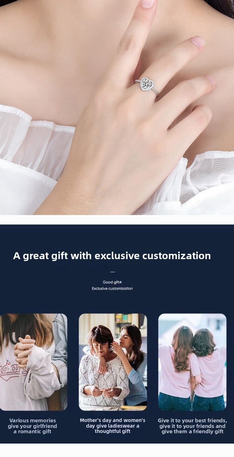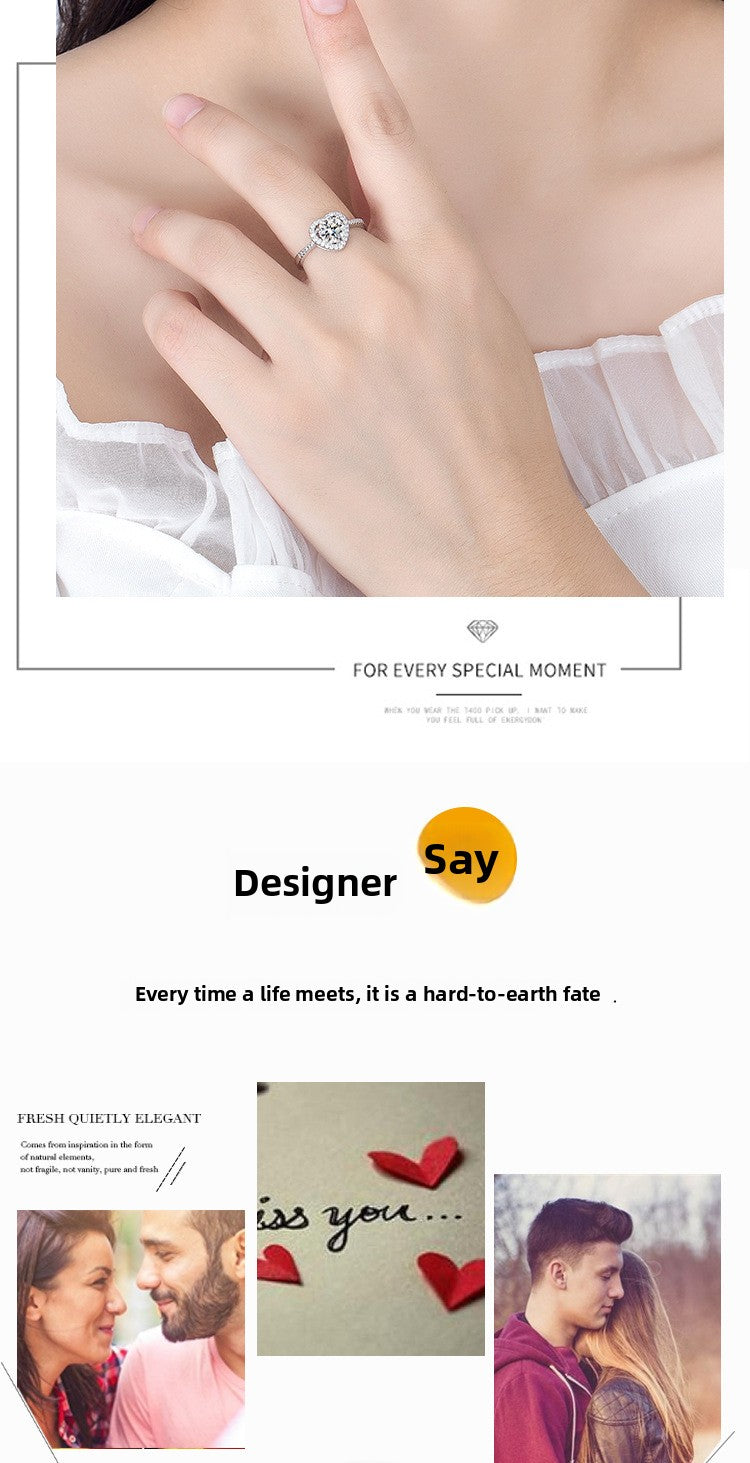 Zircon Ring Sweet Beauty Heart-shaped Hollow Ring 1 karat Moissanite Love Ring